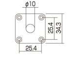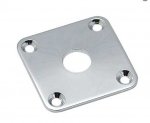 Jackplate for Les Paul®, Chrome plated, with Screws. Jack hole diameter is 3/8" (9.5mm). 1-11/32" square, with the mounting screw holes spacing - 1" (25.4mm). The jackplate has a slight curve to match the body's curved sides.