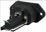 I.E.C. Power Cord Receptacle. Mates with power cords S-W123 and S-W124. Rated for 6A, 250V. UL listed. Compatible with GMA fuses