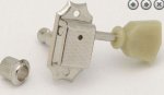 Gotoh SD90 3x3 Vintage style tuning key set with plastic keystone buttons. Nickel finish. 15:1 tuning ratio. Includes all screws and bushings. Frequently used on Gibson® Les Paul® and Epiphone® guitars.